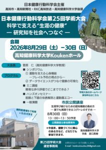 日本健康行動科学会第25回学術大会のポスターを公開しました。 本大会の開催を広く周知するため、学術大会ポスターのPDFデータを公開いたしました。教育機関、医療機関、研究機関などでの掲示や、関係者へのご案内にご活用いただけ […]